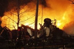 A plane burns after it crashed into a house in Clarence Center, N.Y., Thursday Feb. 12, 2009.