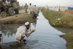 A displaced Pakistani civilian washes his face at the Chota Lahore camp in Swabi district.