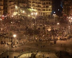 People defy a government curfew as they continue to occupy Tahrir Square on January 30, 2011 in Cairo, Egypt.