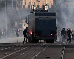 Italian police said that at least four people had been injured in the clashes on Saturday, while the ANSA news agency reported that as many as 70 had been wounded, with three in serious condition.