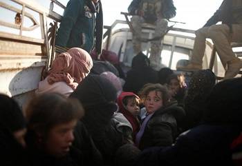 Displaced Iraqis, fleeing villages, sit in a van, Iraq December 7, 2016. REUTERS