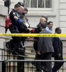 The shooter was one of about 100 people on the balcony inside the second-floor council chambers and was sitting near Davis when the gunfire erupted after 2 p.m, according to witnesses. The security officer, who was on the floor of the chamber, shot up at the gunman, striking him five times, said Police Commissioner Ray Kelly.