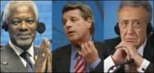 UN Secretary General Kofi Annan (L), his top Iraq official Lakhdar Brahimi (R) and the United States' top civil administrator in Iraq Paul Bremer (C).