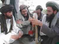 A group of Taliban fighters discuss the possibility of U.S. attacks on Afghanistan, in the capital October 2, 2001. A large number of senior Taliban officials including several cabinet members have gone to several zones of Afghanistan to mobilize local troops and also prevent probable reported uprisings by the local tribes. (Sayed Salahuddin/Reuters)